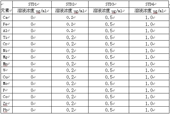 樣品處理:稱取0.5000g試樣置于100mL燒杯中,加5mL鹽酸、2~3mL硝酸,置于電熱板上加熱溶解,加入5ml高氯酸,加熱至冒煙,取下冷卻,加入20mL水,加熱溶解鹽類。冷卻,移入100mL容量瓶中,用水稀釋至刻度,混勻。試液中如有碳化物、硅酸等沉淀物析出,須干過濾。
