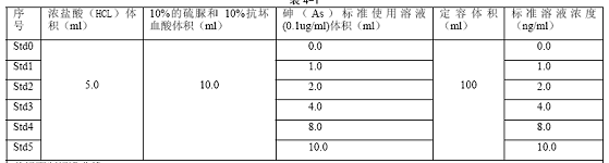 使用砷(As)標準使用溶液(0.1ug/ml),優級純鹽酸(HCL) ,分析純硫脲和抗壞血酸,去離子水(電阻率≥10M 歐姆)等試劑。