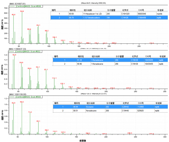 2.3  三重峰的質(zhì)譜圖(圖2.28.68.9 min)經(jīng)NIST2014庫確認(rèn)