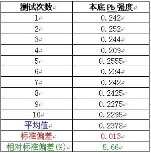 鎳白銅313(Pb:60ppm)中Pb檢出限:(3×0.013)/ 0.0036 (工作曲線斜率)