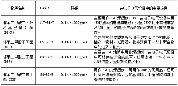 RoHS 2.0是原RoHS指令的升級版,新指令于2019年7月22日起正式實施,并正式將鄰苯二甲酸二(2-乙基己基)酯(DEHP)、鄰苯二甲酸丁芐酯(BBP)、鄰苯二甲酸二丁酯(DBP)和鄰苯二甲酸二異丁酯(DIBP)納入限制物質(zhì)清單中,至此RoHS2.0的管控物質(zhì)達到10項。