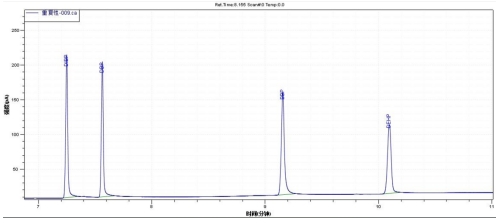 圖3. 4種鄰苯二甲酸酯類標準溶液重復性譜圖疊加圖