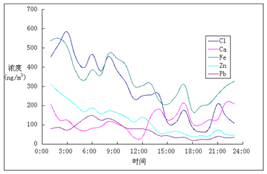 常規大氣重金屬監測手段只監測重金屬元素的日平均濃度的測量,但是大氣重金屬隨著氣象參數與溫度在每天的不同時間段有著較大的變化,日平均濃度無法反應這些變化。大氣重金屬實時在線監測可以實現每天重金屬濃度的小時值測定,有利于分析總結大氣重金屬和非重金屬元素的日變化規律。
