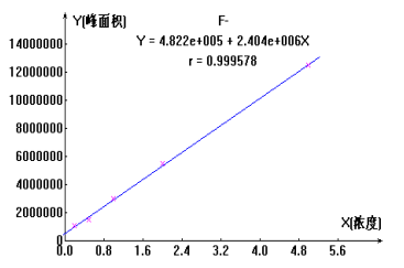 圖2 氟離子標準曲線方程及線性關系圖